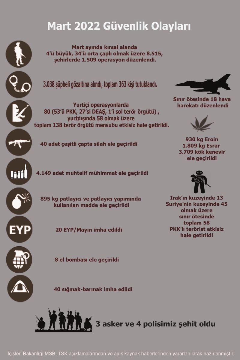 9. Mart ayı içerisinde 3 askerimiz ve 4 polisimiz şehit oldu.
