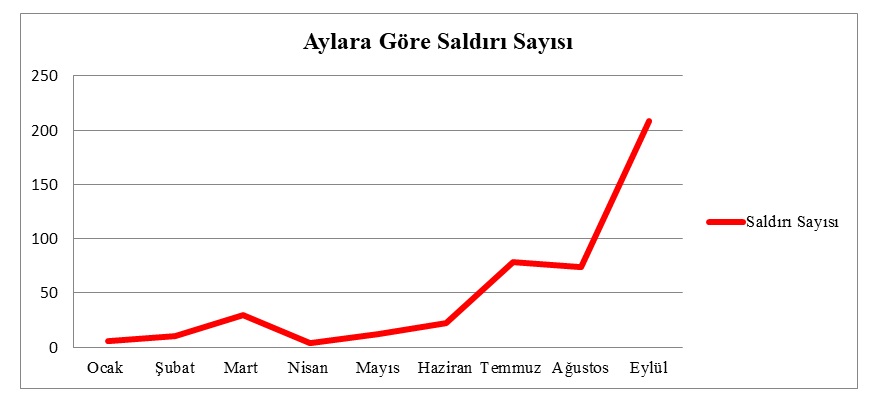 Rusya, 2021 yılında toplayabildiğimiz verilere göre İdlib’te toplam 444 (25 Eylül 2021 tarihine kadar) hava saldırısı ve füze atışı gerçekleştirmiştir. Bu sayı Mart 2020’de mutabakata varılmasından sonra gerçekleşen 50 civarındaki saldırının 8 katıdır. 444 saldırının 84’ü yılın ilk altı ayında gerçekleşirken; geri kalan 360 tanesi son 3 aydan kısa süre içinde gerçekleşmiştir. Bu aylar içindeki dağılıma bakıldığında da Eylül ayının önceki ayların toplamından da büyük bir sıçramaya sahne olduğu anlaşılmaktadır.
