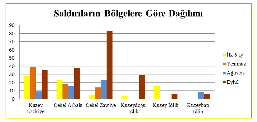 Yukarıda saldırıların bölgelere ve aylara göre dağılımı, bölgelerin İdlib’teki önemi ve konumu, hedef alınan yerlerin niteliği ve hedef alınan bölgelerin dönemlere göre dağılımı incelendiğinde karşımıza çıkan göstergeleri şöyle özetleyebiliriz: