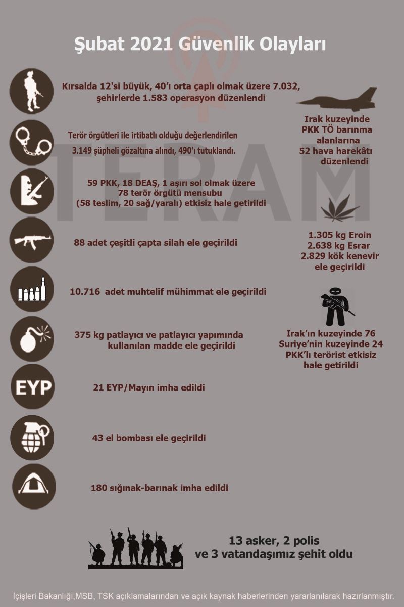 11. Şubat ayı içerisinde 13 askerimiz, 2 polisimiz ve 3 vatandaşımız şehit oldu.
